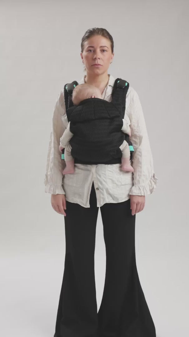Det unikke, justerbare frontpanel gør det nemt at finindstille sædet, så du altid opnår korrekt knæ-til-knæ-støtte. Det glatte slidersystem gør det muligt at justere bredden på det nederste panel med én hånd - også mens du bærer. Det gør panelet smallere til nyfødte og giver samtidig optimal støtte ved både indadvendt og udadvendt bæring. Højden på frontpanelet kan desuden justeres via nakkestøtten, så bæreselen vokser med dit barn.
