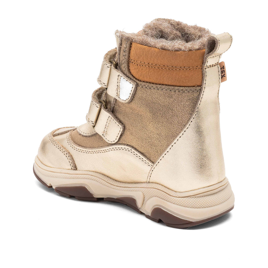 Designet i blødt læder og tekstil af høj kvalitet, og foret med varm og temperaturregulerende uld, som sikrer, at fødderne altid har det behageligt – uden risiko for overophedning. Den letvægtige, fleksible sål med stødabsorbering giver en blød og naturlig gang, mens det høje skaft beskytter mod kulde og sne.