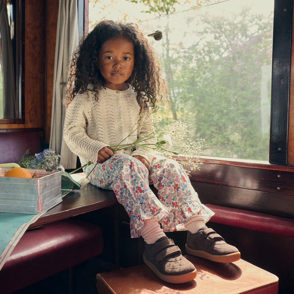 Corey er designet som en barfodssko, hvilket betyder, at sålen er ekstra fleksibel og støtter en naturlig fodstilling. De justerbare velcroremme gør skoen nem at tage af og på og sikrer samtidig en god og præcis pasform.