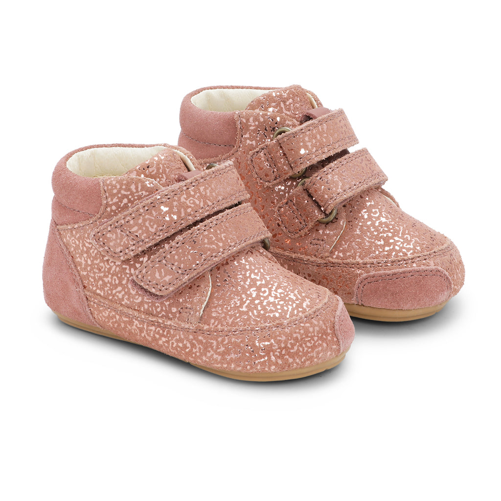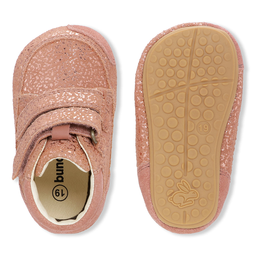 Skoen har en tæt og støttende pasform omkring anklen, der giver tryghed, mens den bløde og fleksible TPR-sål følger barnets naturlige bevægelser og fremmer en sund fodstilling. Den flade konstruktion uden hældrop giver maksimal kontakt med underlaget, så barnet kan mærke og forstå sine skridt.