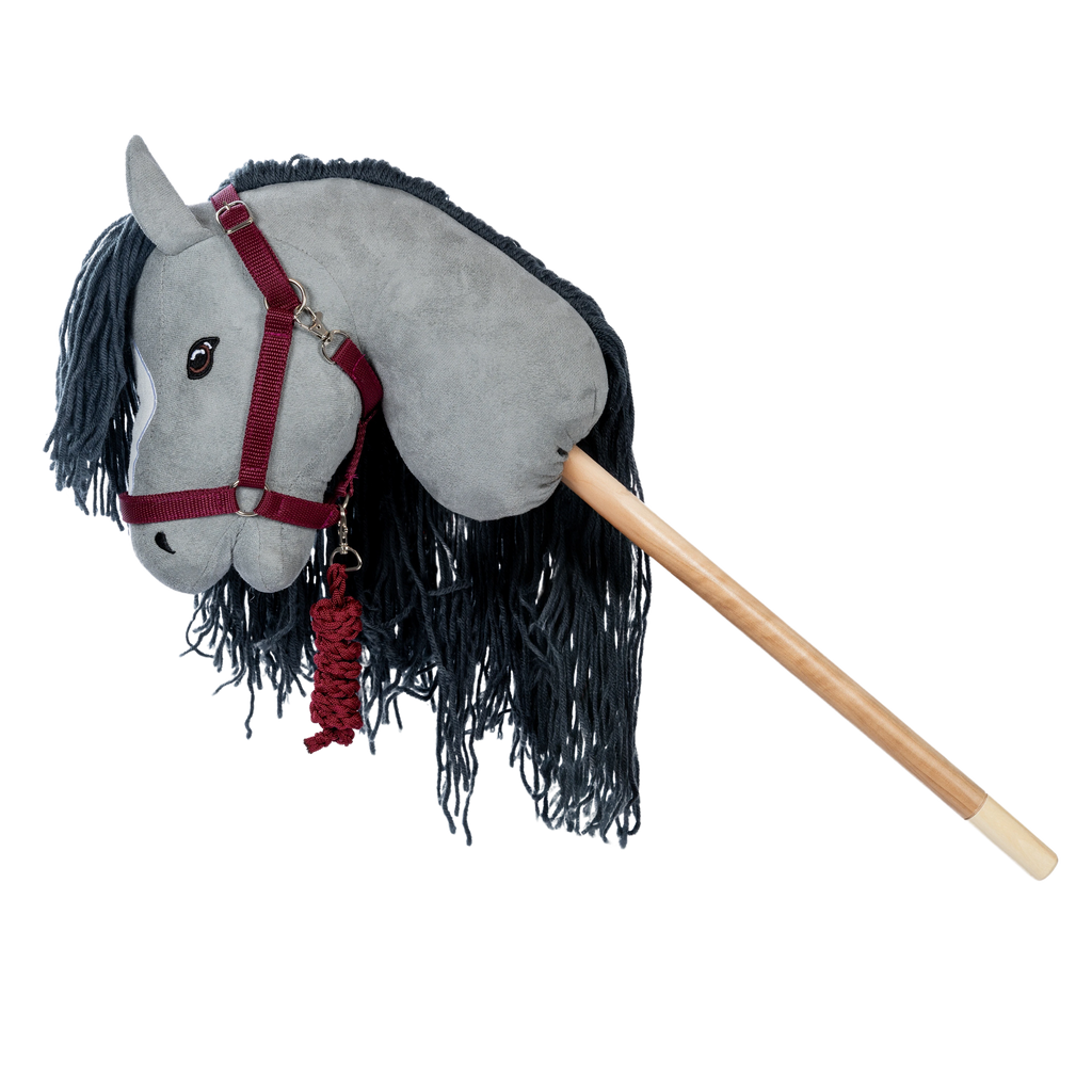 Inspireret af rigtige hestegrimer kombinerer dette sæt stil og funktionalitet. Det justerbare nakkebånd sikrer, at grimen kan tilpasses til de fleste kæpheste, uanset størrelse eller race, så den sidder perfekt på netop din kæphest.
