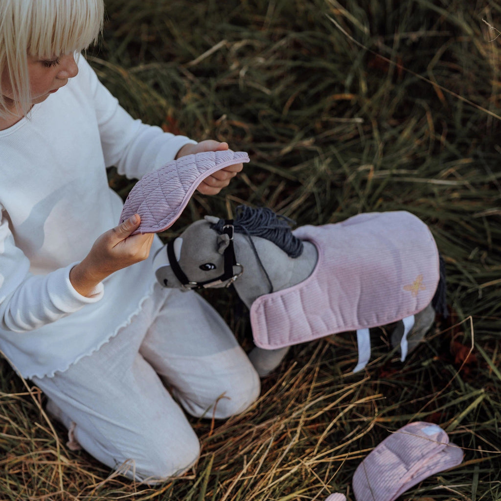 Giv din lille hest et strejf af luksus med dette elegante tilbehørssæt i rosa fløjl fra byASTRUP®. Sættet kombinerer stil, komfort og leg, og gør din hest klar til enhver fantasifuld rideoplevelse.