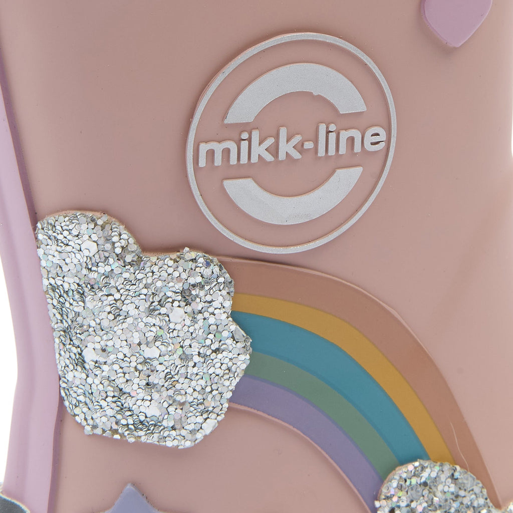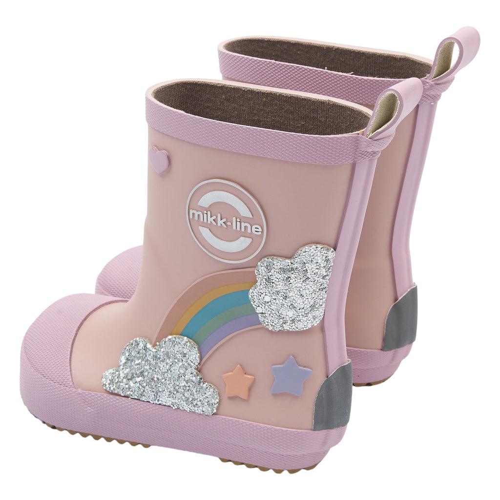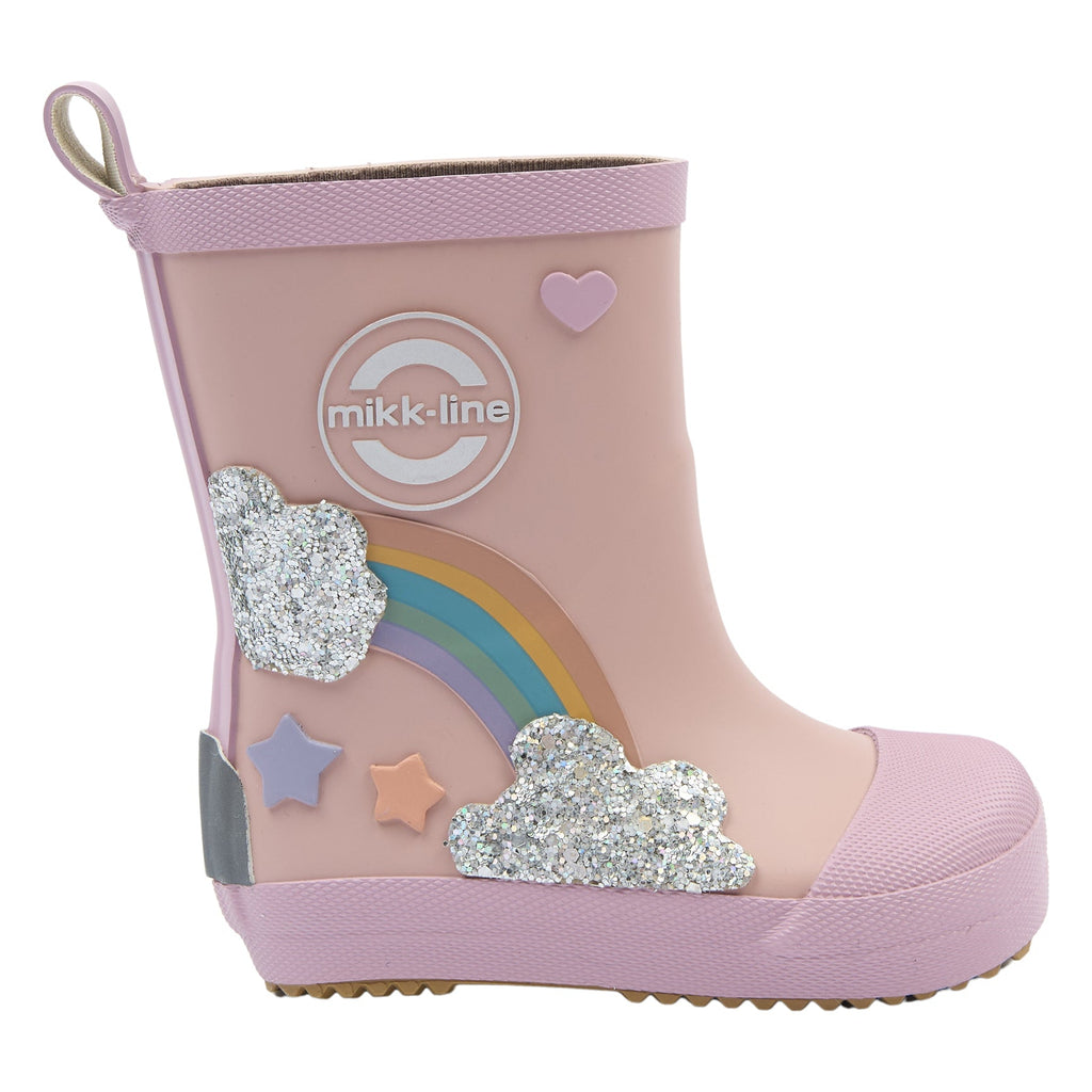 Gør regnvejrsdage endnu sjovere med disse fine gummistøvler fra Mikk-Line med et sødt 3D-regnbuemotiv og glitrende skyer. De farverige detaljer gør det ekstra spændende for små eventyrere at hoppe i støvlerne og begive sig ud i vandpytter og våde lege.