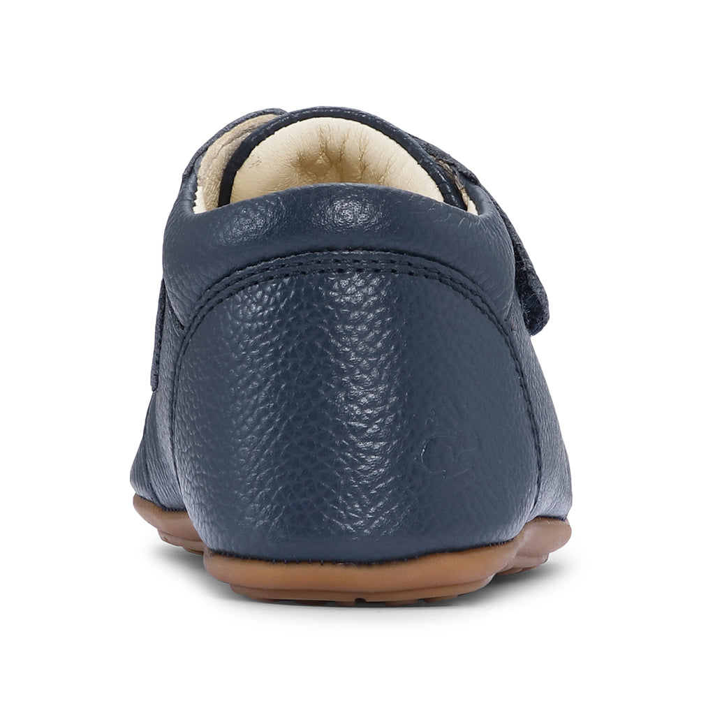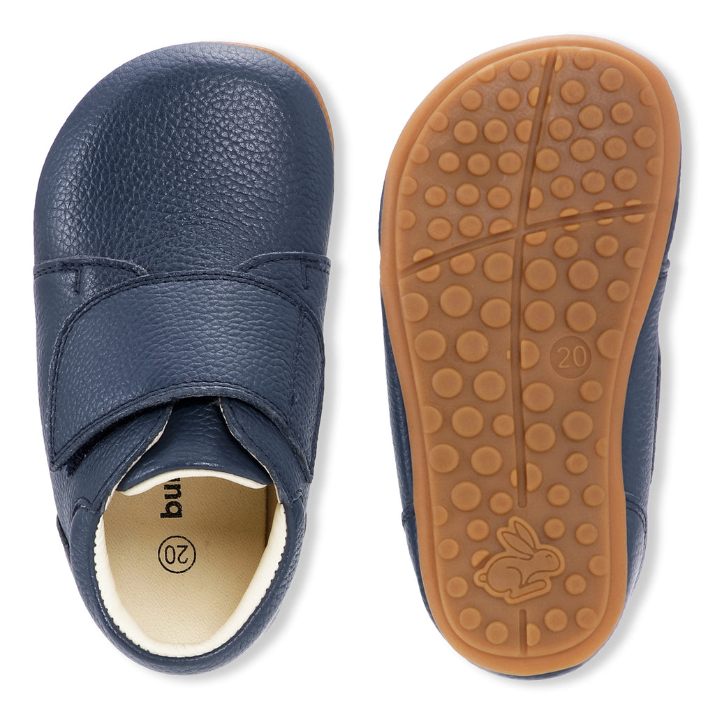Den brede velcrorem gør skoen nem at tage af og på og sikrer en fleksibel pasform, som tilpasses både smalle og brede fødder. Den faste hælkappe giver stabilitet, mens den flade og fleksible TPR-sål uden hældrop støtter en naturlig fodstilling og fri bevægelse.