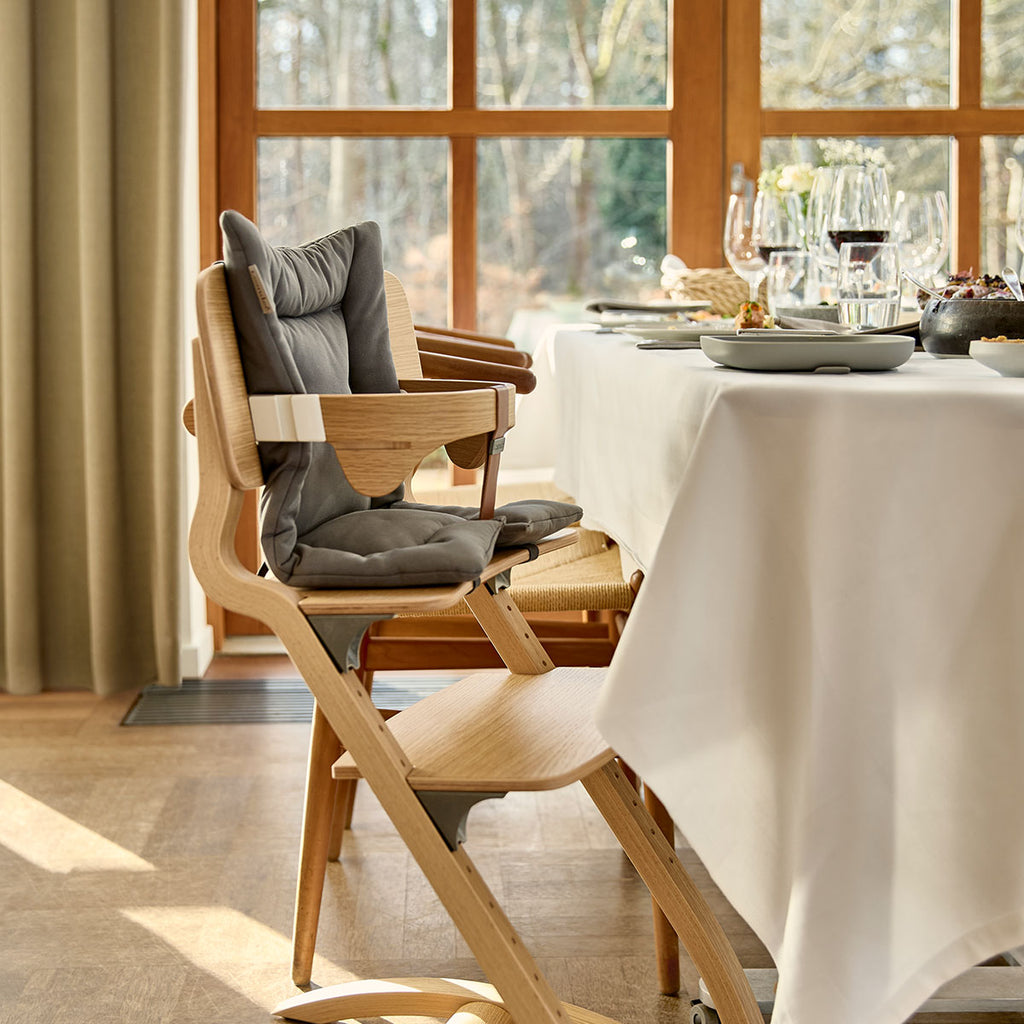 Leander Louie hynden kombinerer komfort, funktion og æstetik – og giver dit barn en blødere og mere behagelig siddeoplevelse i den smukke Louie højstol.