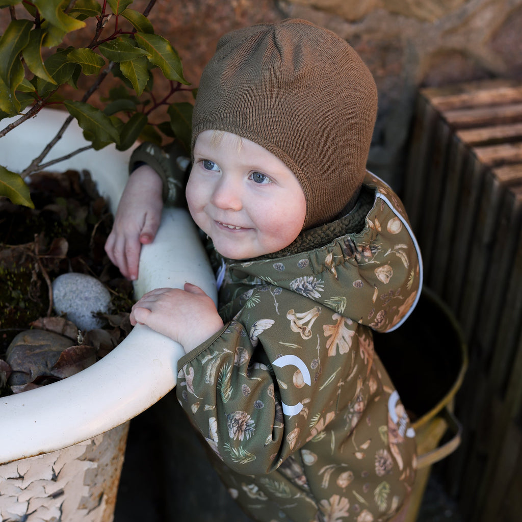 Elefanthuen dækker hoved, hals og dele af ansigtet, så barnet holdes lunt og behageligt. Med sit enkle, unisex design i ensfarvet look er den en praktisk og alsidig klassiker til hverdagen.