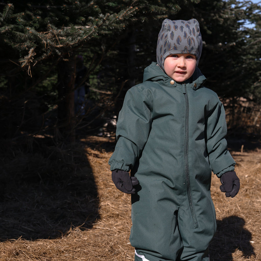 Sættet består af én ensfarvet elefanthue og én med flot all-over print, så du får både et enkelt og et mere legende design. Elefanthuen dækker hoved, hals og dele af ansigtet og sikrer dermed, at barnet er godt beskyttet mod kulde, når I leger og udforsker udendørs.
