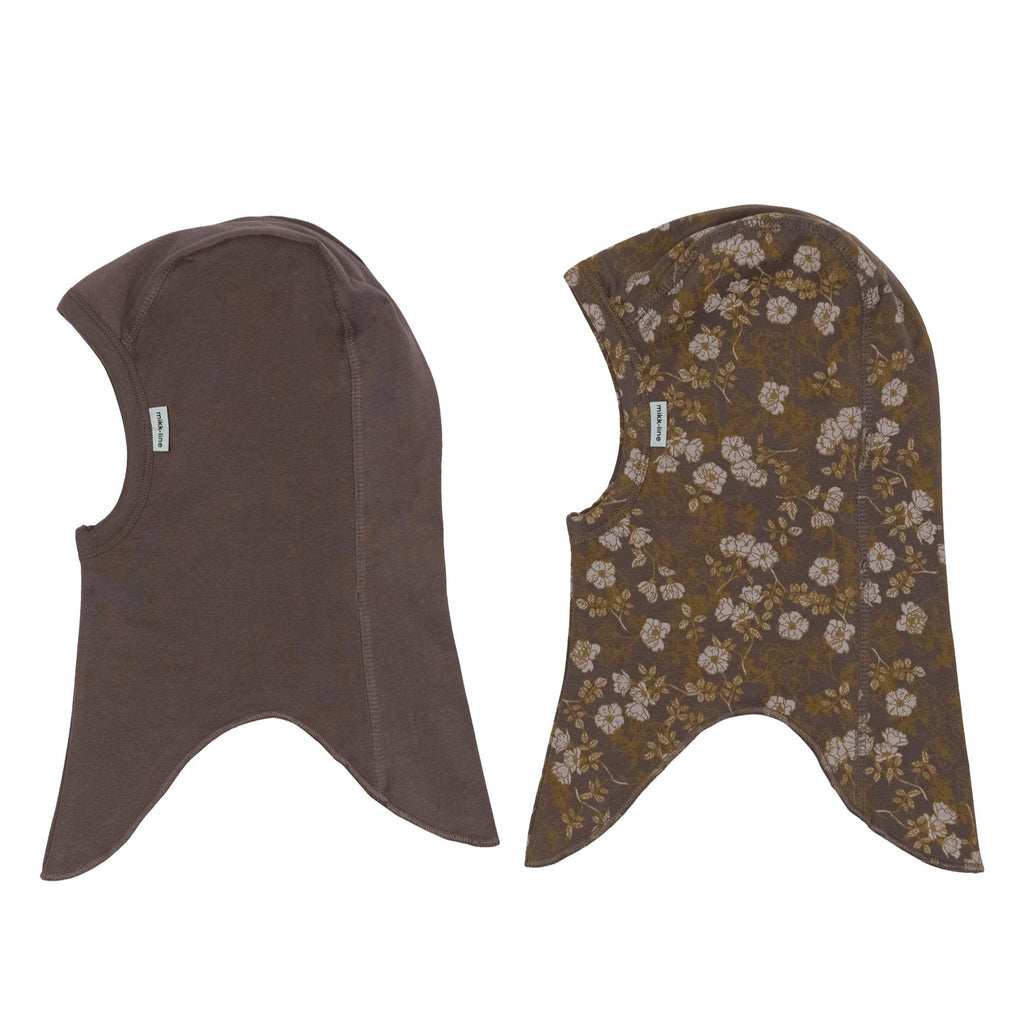 Sættet består af én ensfarvet elefanthue og én med flot all-over print, så du får både et enkelt og et mere legende design. Elefanthuen dækker hoved, hals og dele af ansigtet og sikrer dermed, at barnet er godt beskyttet mod kulde, når I leger og udforsker udendørs.
