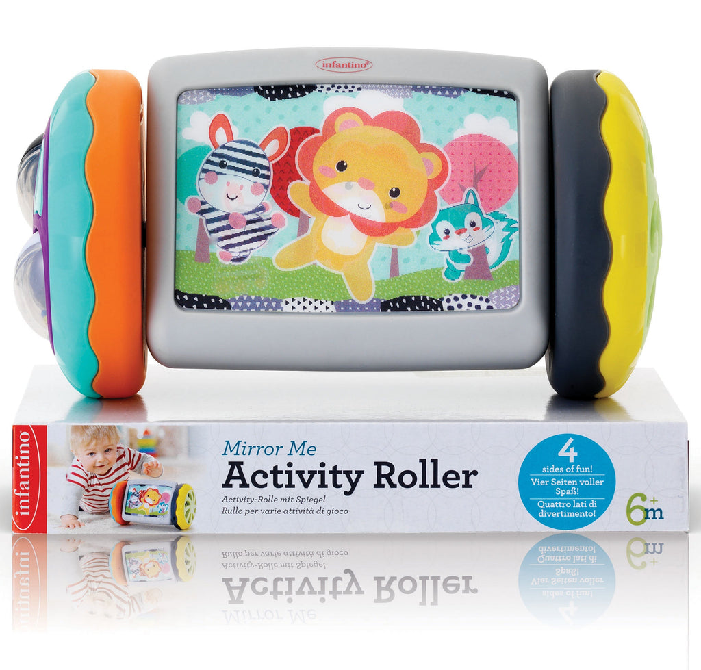 Det farverige rullespejl fra Infantino er perfekt til at holde baby aktiv og nysgerrig! Spejlet har en dobbeltsidet funktion med et sødt motiv på den ene side og et sikkert babyspejl på den anden.