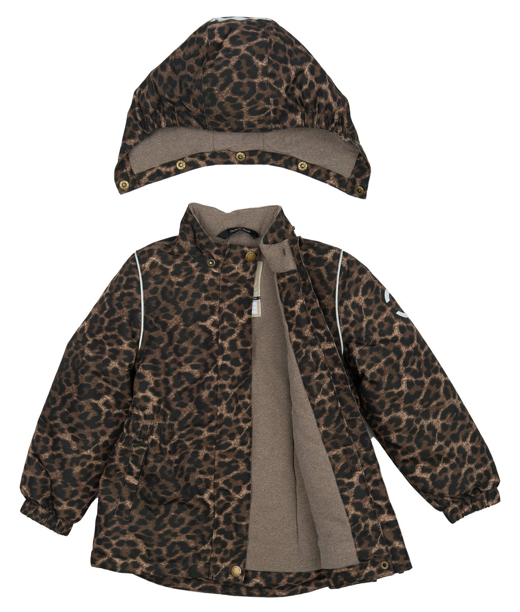 Mikk-Line vinterjakke med all-over leoprint er en let og funktionel jakke til piger, der elsker at lege ude i al slags vintervejr. Jakken er fremstillet i polyester med blødt foer og varm, letvægts polstring, der holder barnet komfortabelt – selv i koldt, vådt, blæsende og snefuldt vejr.