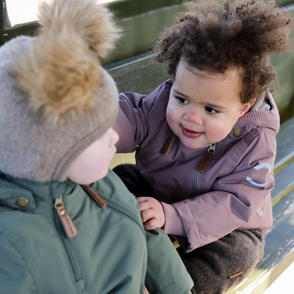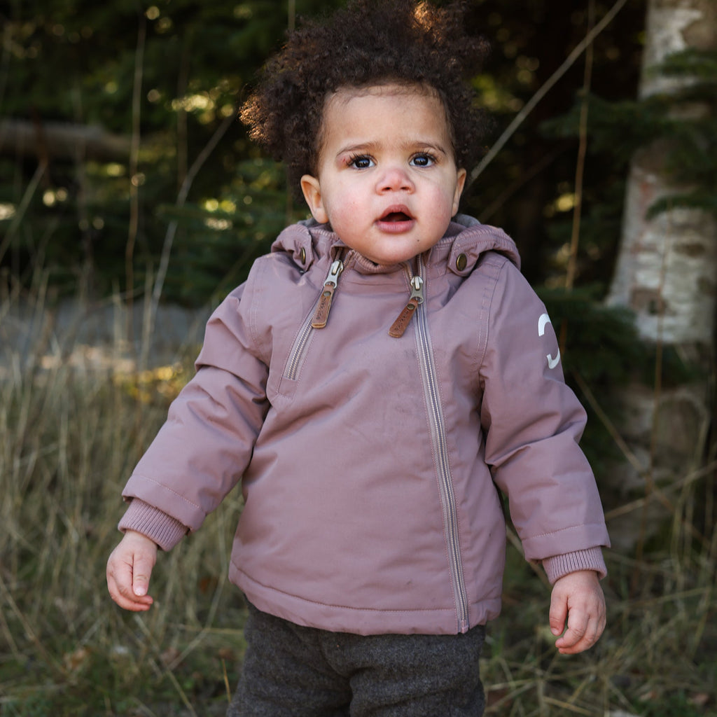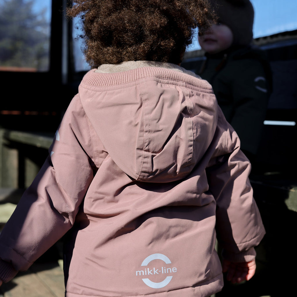 Mikk-Line vinterjakke er en varm og funktionel jakke til de mindste, der elsker at være ude i alt slags vintervejr. Jakken er fremstillet i slidstærkt nylon med blødt fleecefoer i krop og hætte. Den holder barnet lunt, mens materialet beskytter mod regn, sne og blæst.