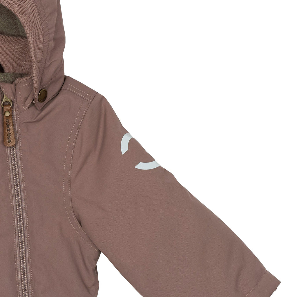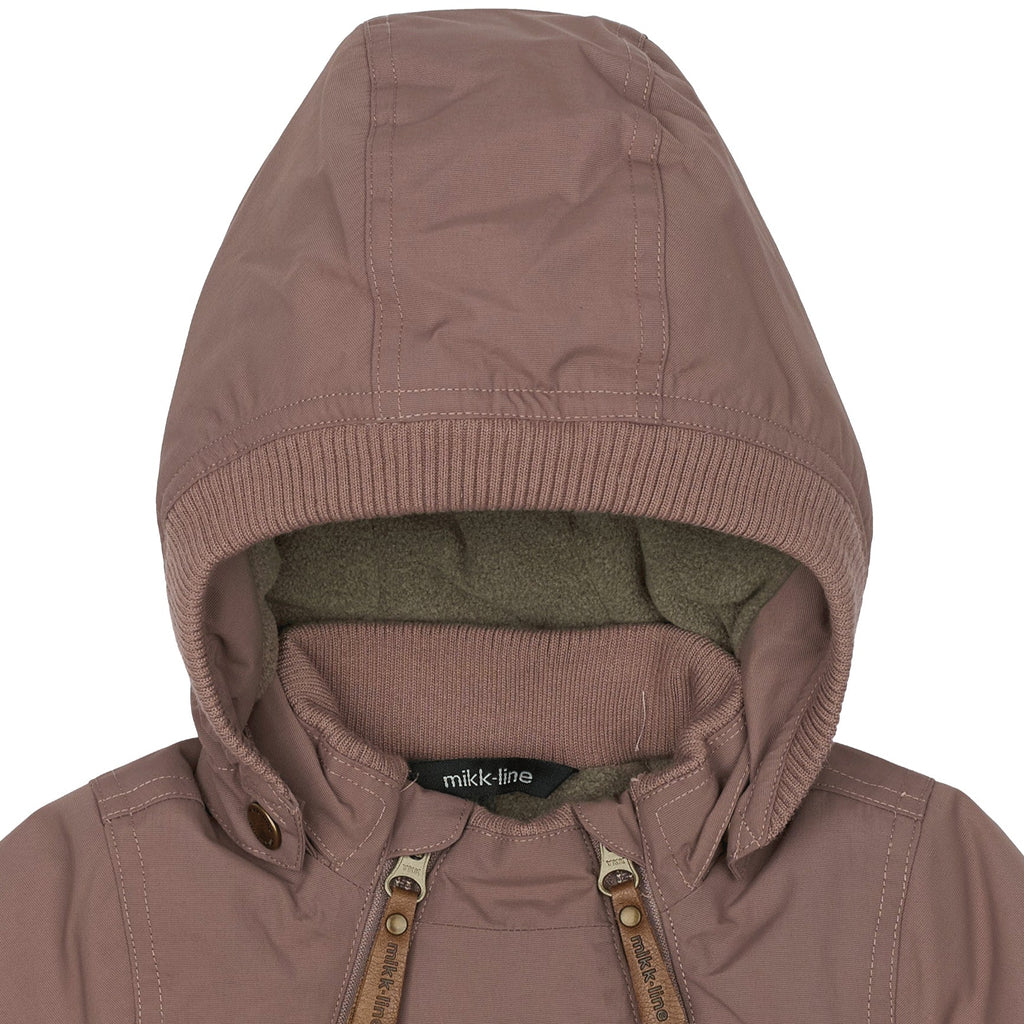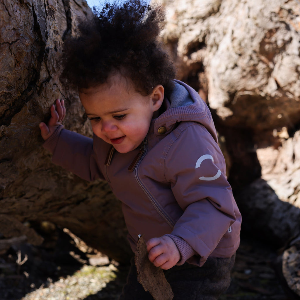 Mikk-Line vinterjakke er en varm og funktionel jakke til de mindste, der elsker at være ude i alt slags vintervejr. Jakken er fremstillet i slidstærkt nylon med blødt fleecefoer i krop og hætte. Den holder barnet lunt, mens materialet beskytter mod regn, sne og blæst.