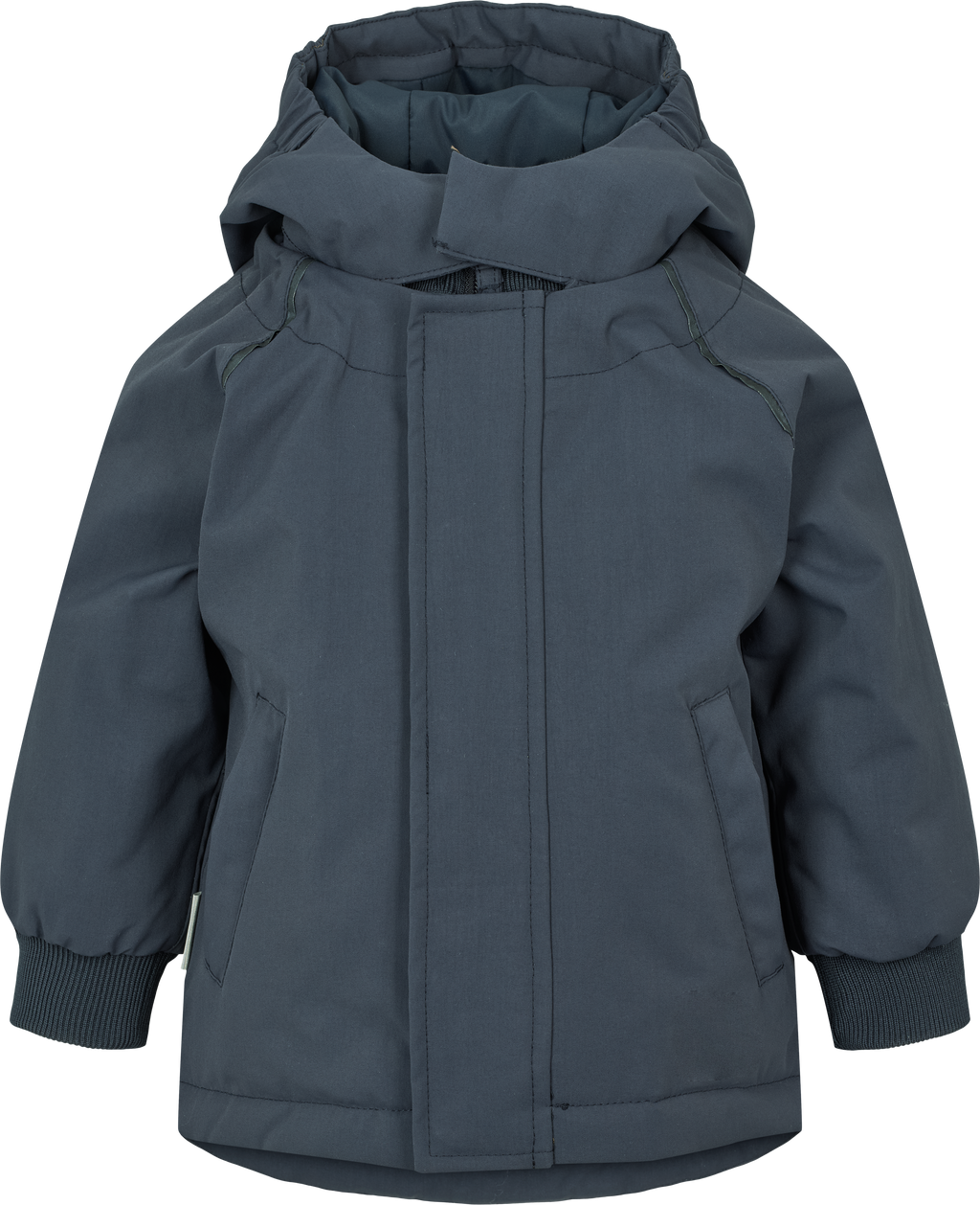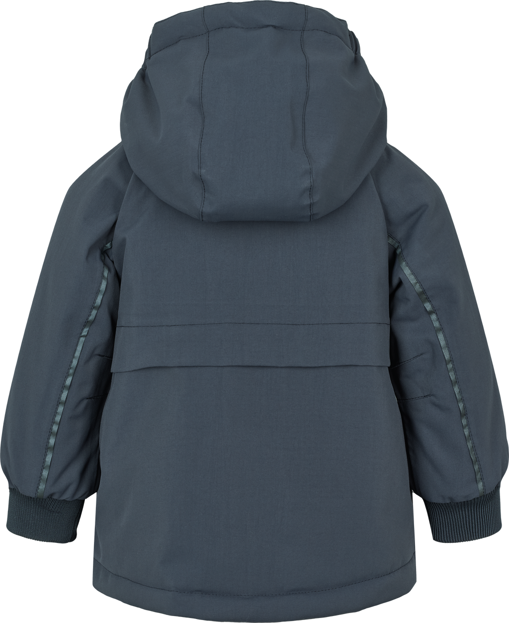 Jakken lukkes foran med lynlås og trykknapper, har to praktiske lynlåslommer med blødt fleecefoer og en aftagelig hætte. Med THERMOLITE®-isolering holdes barnet varmt uden at jakken føles tung, og materialet er behandlet med BIONIC-FINISH® ECO, en fluorfri vandafvisende imprægnering.