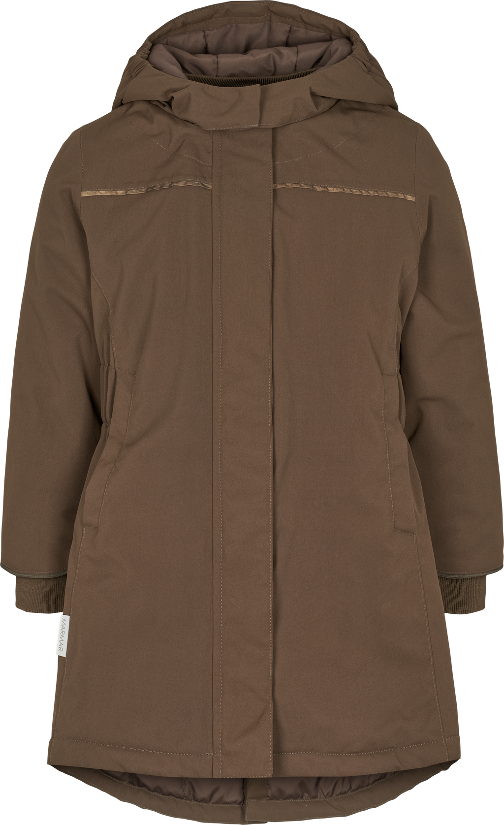 MarMar Olga vinterjakke er en lang, praktisk og feminin jakke til børn, som kombinerer funktionalitet, varme og et stilrent design. Jakken har en bred elastik i taljen, der giver et flot snit, samtidig med at den sikrer en behagelig pasform.