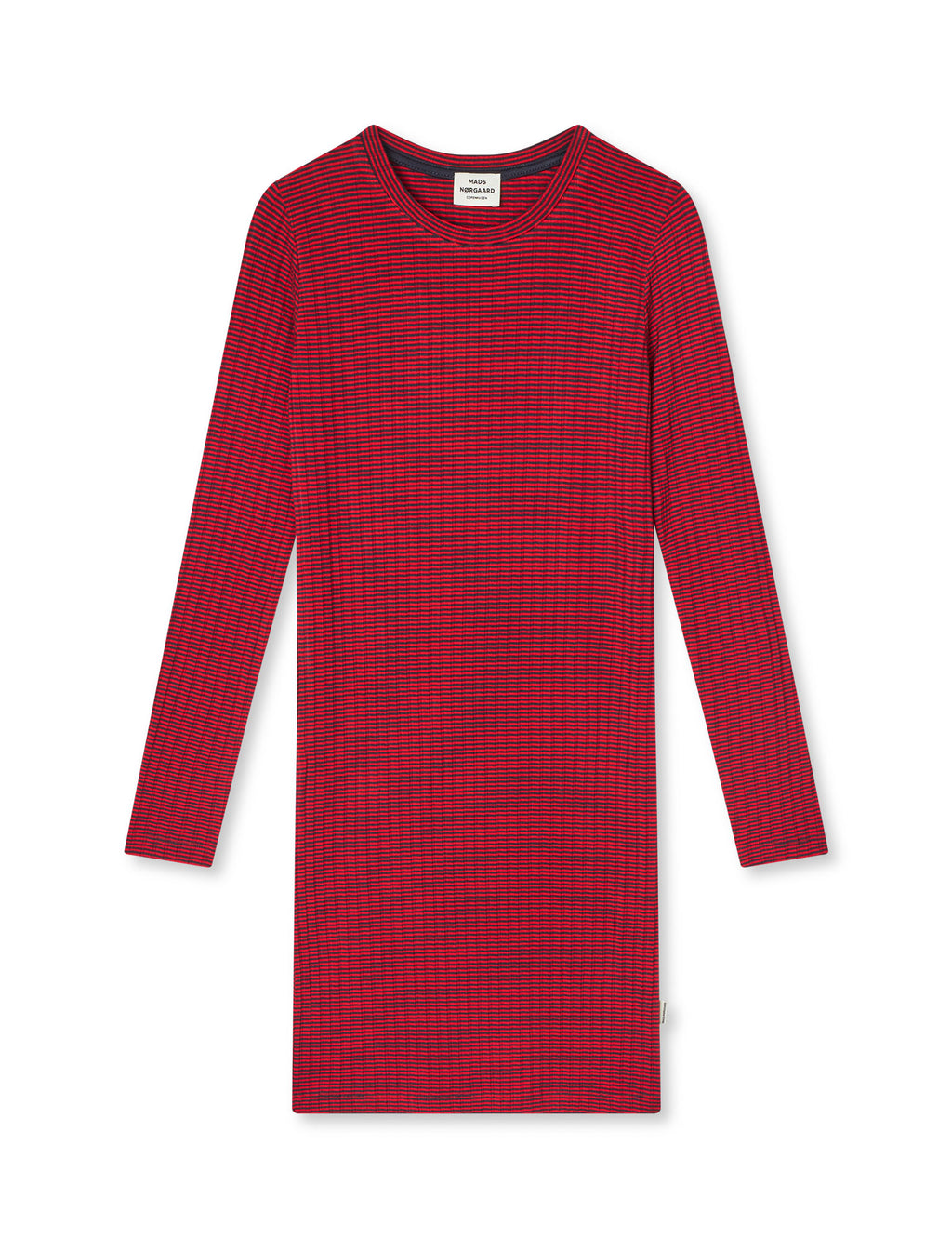 Mads Nørgaard 5x5 Classic Stripe Dubina Kjole - Parisian Night/High Risk Red