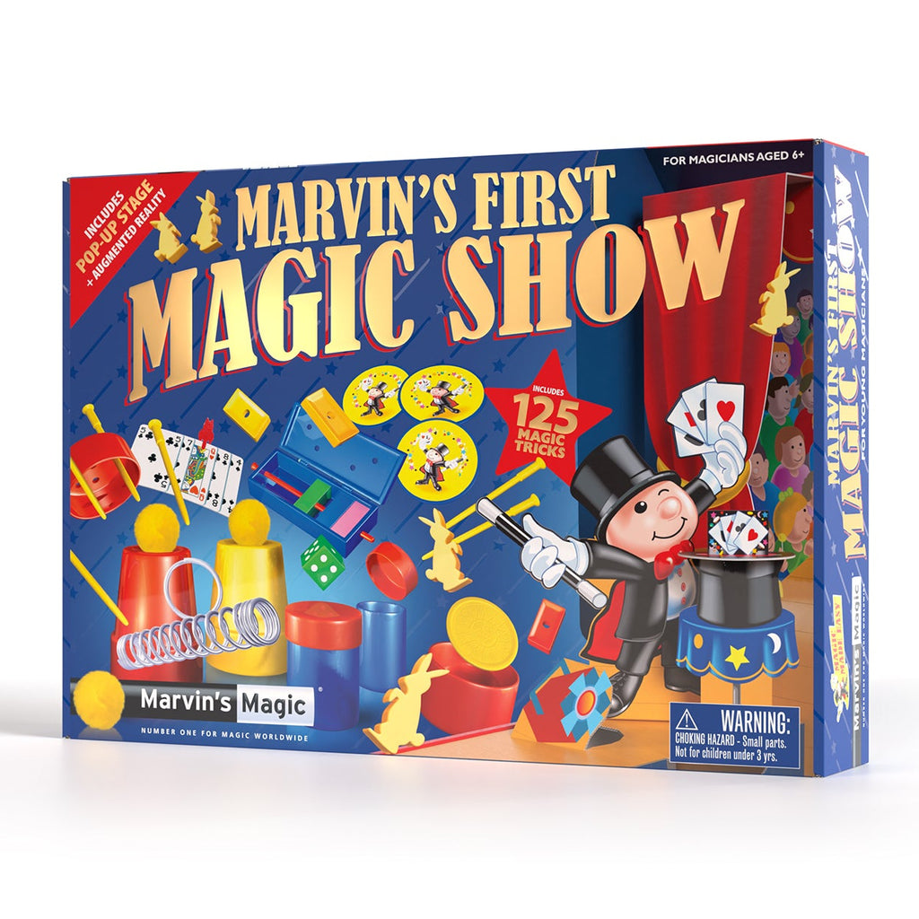 Træd ind i trylleriets magiske verden med Marvins Magic - Mit første trylleshow! Dette farverige tryllesæt er den perfekte introduktion for børn, der drømmer om at blive tryllekunstnere og imponere familie og venner med sjove og forbløffende tricks.