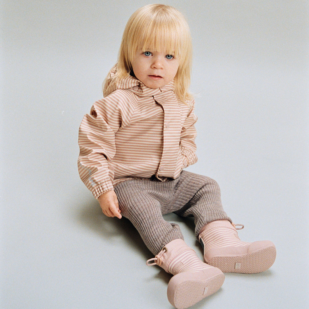 Cali er et lækkert regnsæt til de mindste, designet med fokus på komfort, funktion og et enkelt, tidløst udtryk. Det bløde og lette materiale føles behageligt mod barnets hud og giver fuld bevægelsesfrihed i hverdagen - uanset om barnet ligger, sidder eller er i gang med sine første bevægelser.