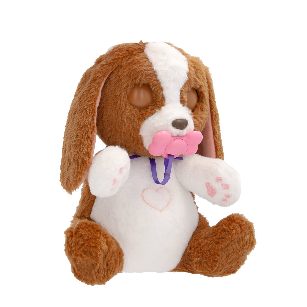 For at hjælpe hvalpen helt til ro medfølger også en sut, som får den til at lukke øjnene og falde til ro. Med dyrlægetemaet følger tre interaktive tilbehørsdele - sprøjte, termometer og stetoskop - så barnet kan lege dyrlæge og tage sig kærligt af sin lille patient.