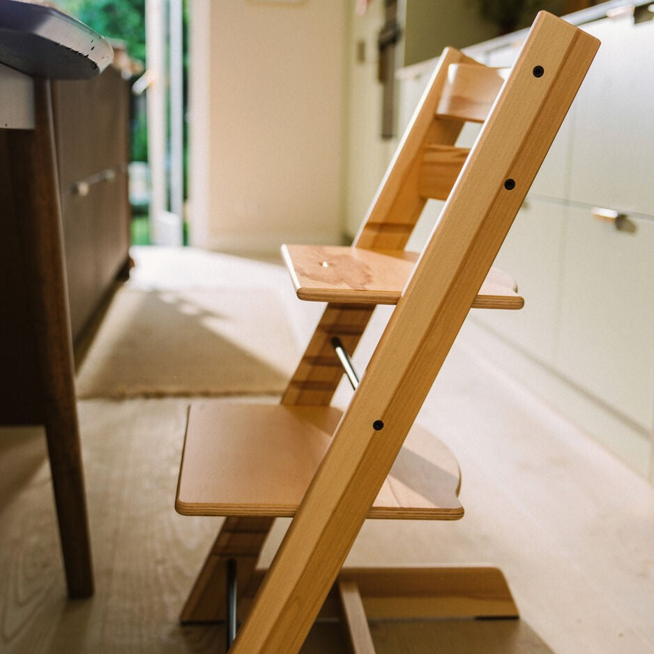 Tripp Trapp® er lavet af robust europæisk træ og har et stabilt design, der holder i mange år. Der medfølger hele 7 års garanti på trædelene.
