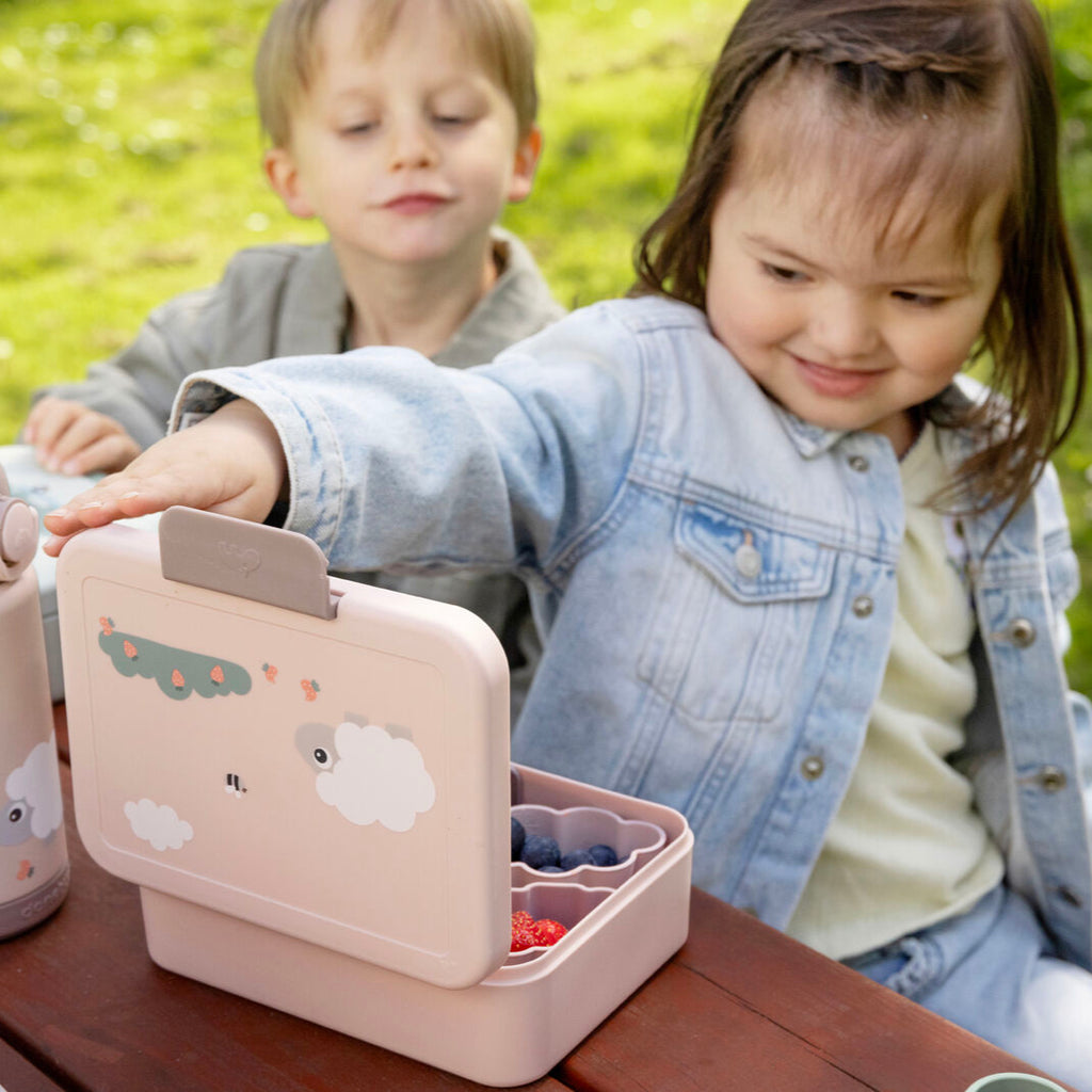 Gør frokosten sjovere for dit barn med den fine Done by Deer madkasse med opdeler fra serien Tiny Farm. Madkassen er pyntet med søde dyr fra bondegården, der bringer smil frem hos både små og store.