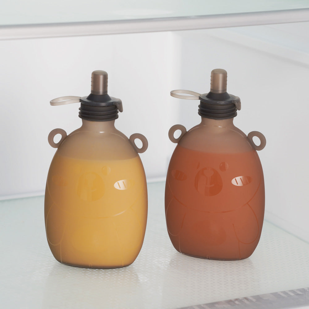 Låget er udformet, så børn selv kan drikke direkte fra posen uden at spilde, og det medfølgende silikonesugerør kan bruges til både væsker og tyndere puréer. En praktisk og bæredygtig løsning til børnefamilier på farten.