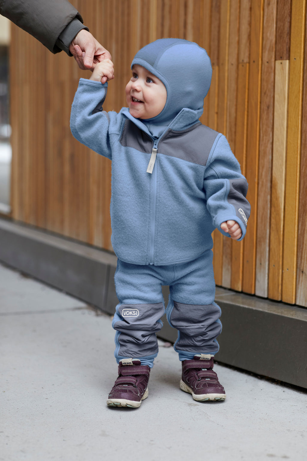 Den tykke uldfleece af merinould føles blød og behagelig mod huden og hjælper med at holde barnet varmt, uden at det bliver for varmt. Ulden er naturligt temperaturregulerende, åndbar og fugtabsorberende, hvilket gør bukserne perfekte til aktive børn.
