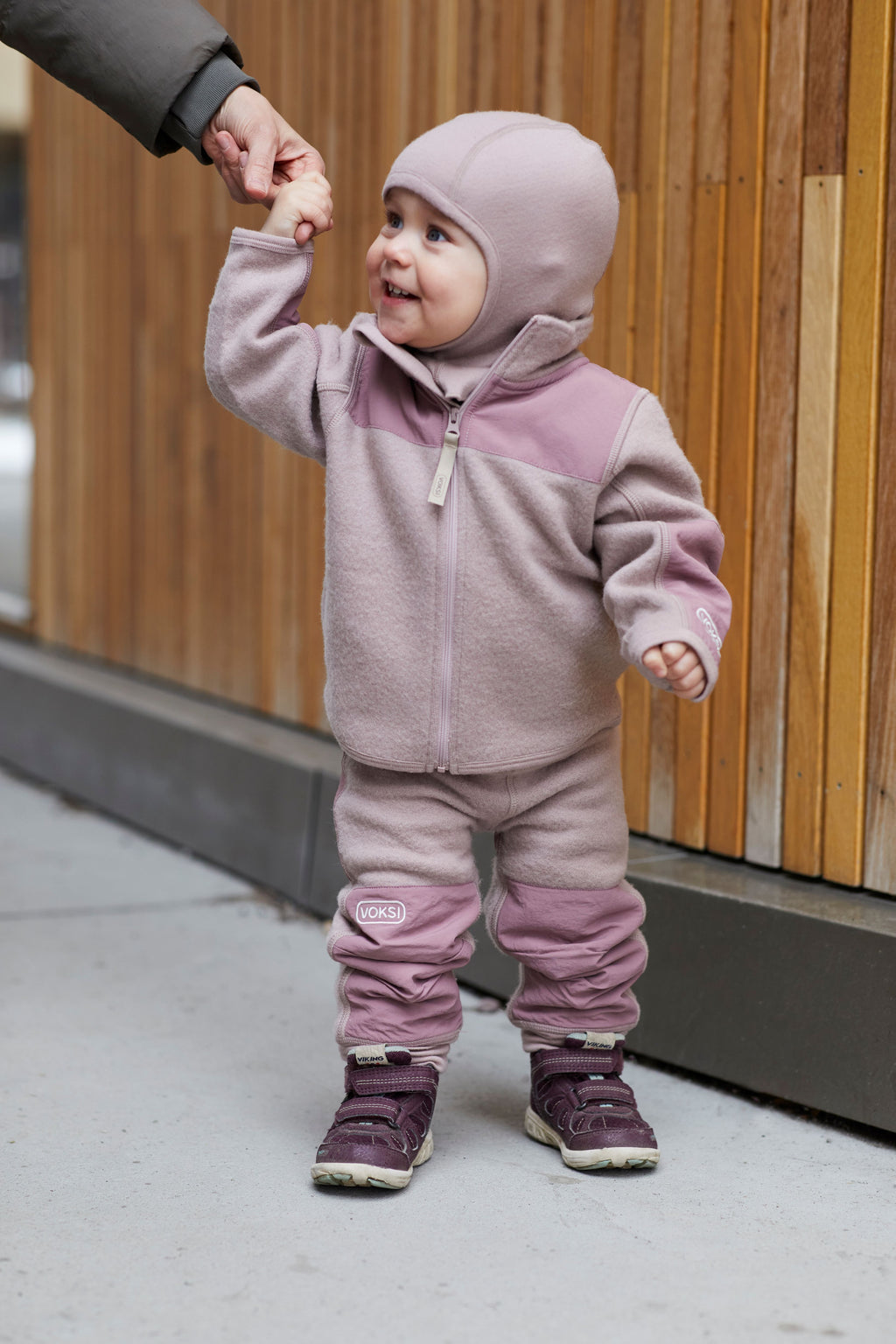 Den tykke uldfleece af merinould føles blød og behagelig mod huden og hjælper med at holde barnet varmt, uden at det bliver for varmt. Ulden er naturligt temperaturregulerende, åndbar og fugtabsorberende, hvilket gør bukserne perfekte til aktive børn.