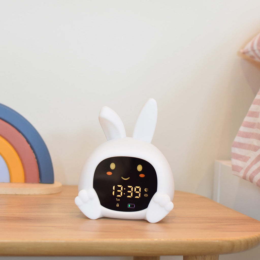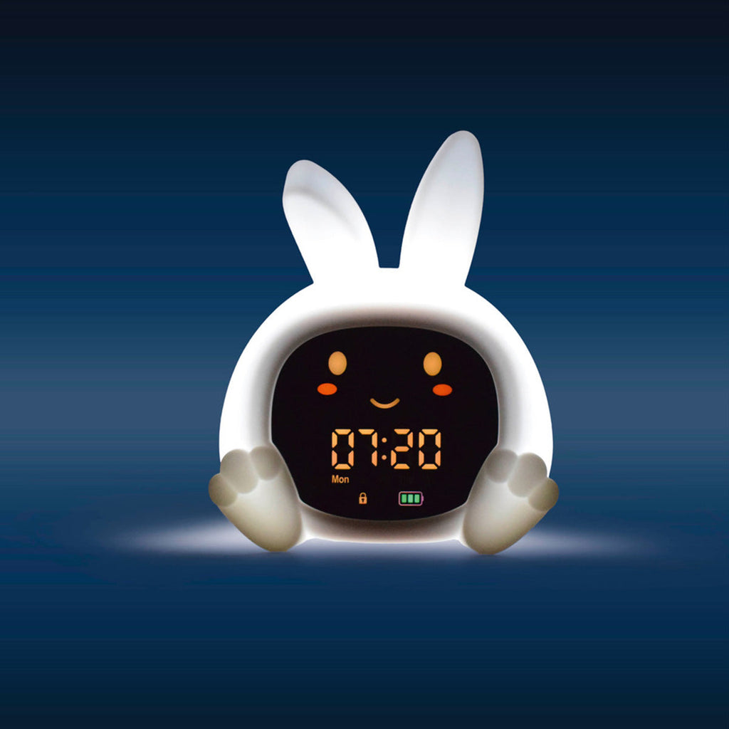 Når det er sengetid, lyser natlampen rødt, og Sarah lukker øjnene. Kort før morgenen kan lyset skifte til orange som en blid overgang, og når det er tid til at stå op, bliver lyset grønt, og Sarah åbner øjnene. En tryg og tydelig måde at skabe gode søvnvaner på.