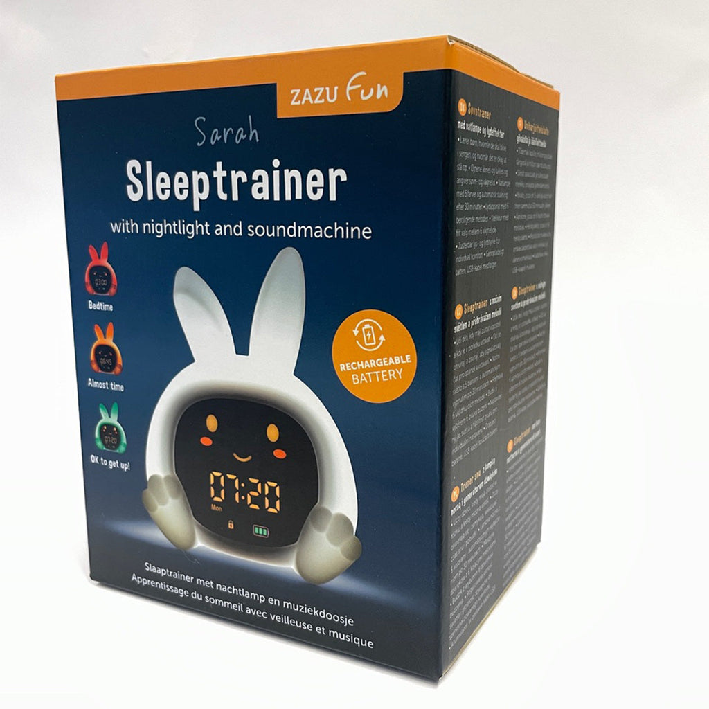 ZAZU Sarah er en charmerende og pædagogisk søvntræner, der hjælper børn med at forstå, hvornår det er tid til at sove - og hvornår det er okay at stå op. Med farveskiftende lys og bevægelige øjne gør Sarah det nemt og visuelt for barnet at skelne mellem nat og morgen.